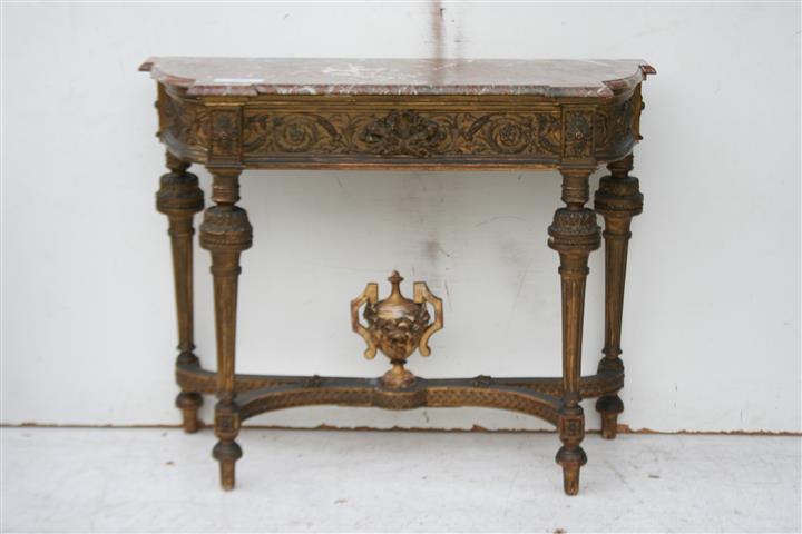 Consola tallad estilo francés Luis XVI patinada con tapa de mármol