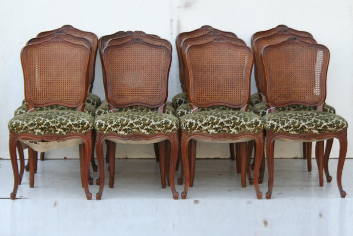 – Juego de 12 sillas estilo francés Luis XV de respaldo de esterilla