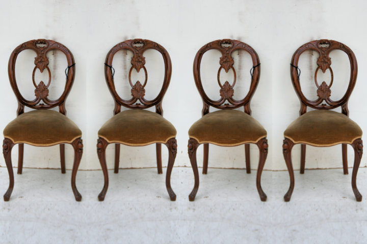 Juego de 4 sillas estilo Inglés de respaldo tallado