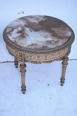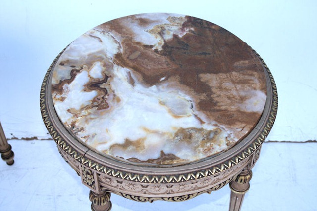 Espectacular par de mesas centro o ratona estilo francés Luis XVI Son ideales para colocar en cualquier sala, living o comedor La estructura de madera está patinada |