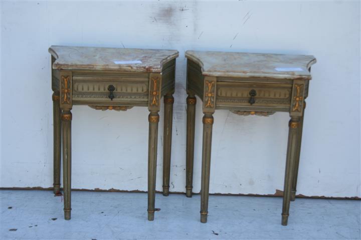 Par de mesas de luz estilo francés Luis XVI con tapa de mármol patinadas