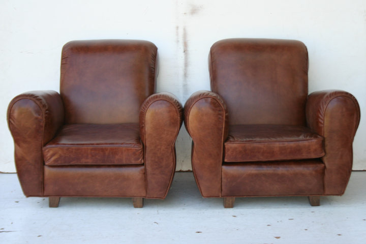 – Par de sillones estilo Inglés en cuero 100% vacuno natural gastado