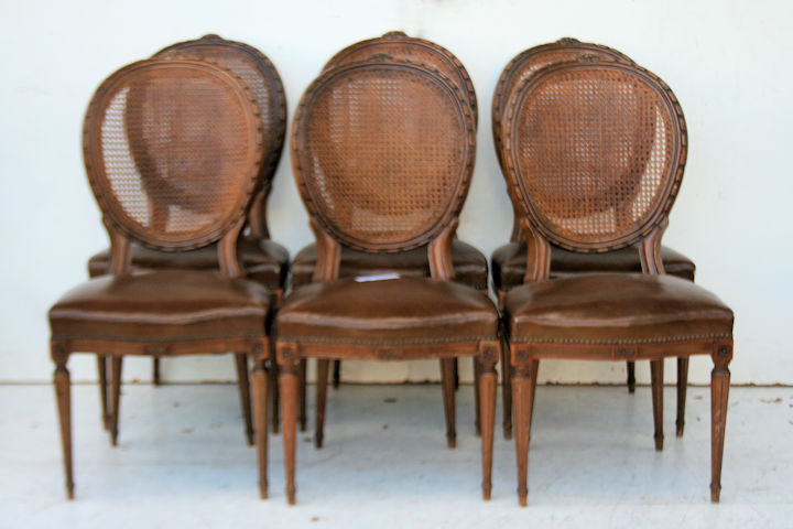 – Juego de 6 sillas estilo francés Luis XV con respaldo oval de esterilla