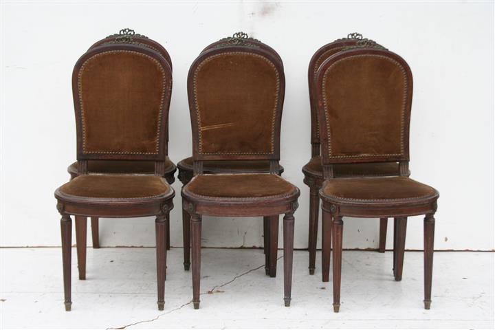 – Juego de 6 sillas estilo francés Luis XVI con broncería en la parte superior