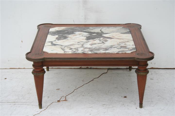 – Antigua mesa ratona de estilo con tapa de mármol