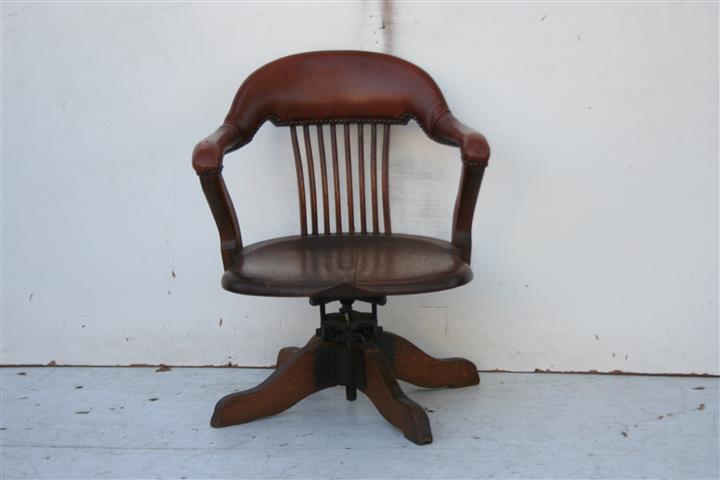 Sillón giratorio antiguo de roble con respaldo tapizado