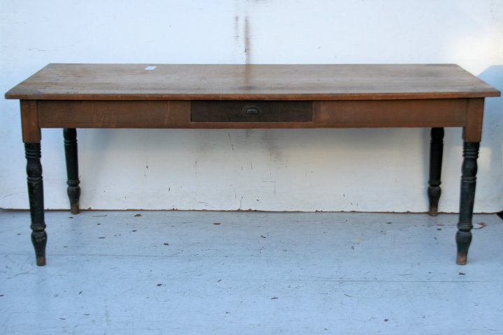 Mesa rústica de patas torneadas con cajón central