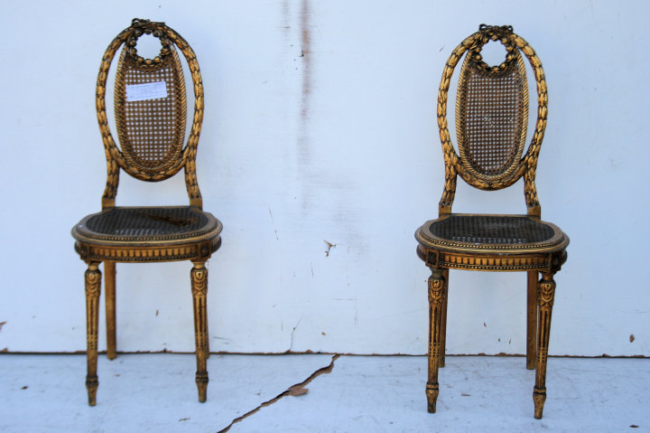 Par de sillas estilo francés Luis XVI doradas con esterilla