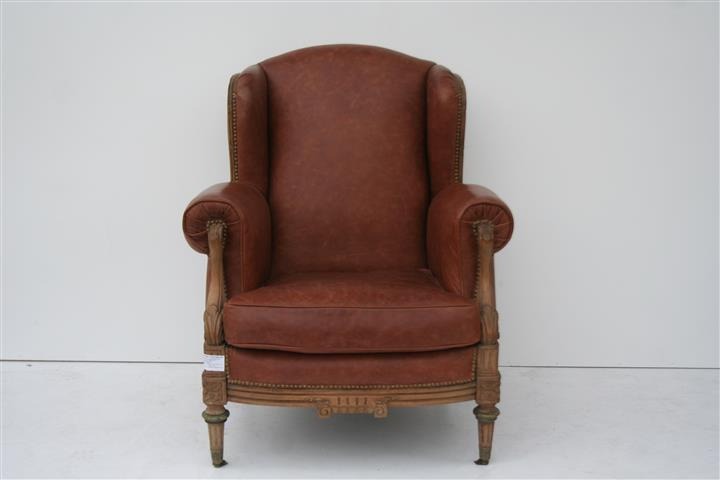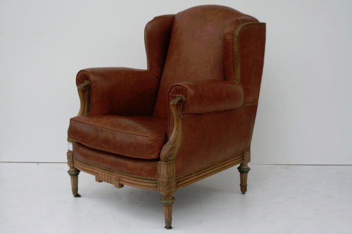 – Sillón estilo francés Luis XVI de sala o living tapizado en cuero