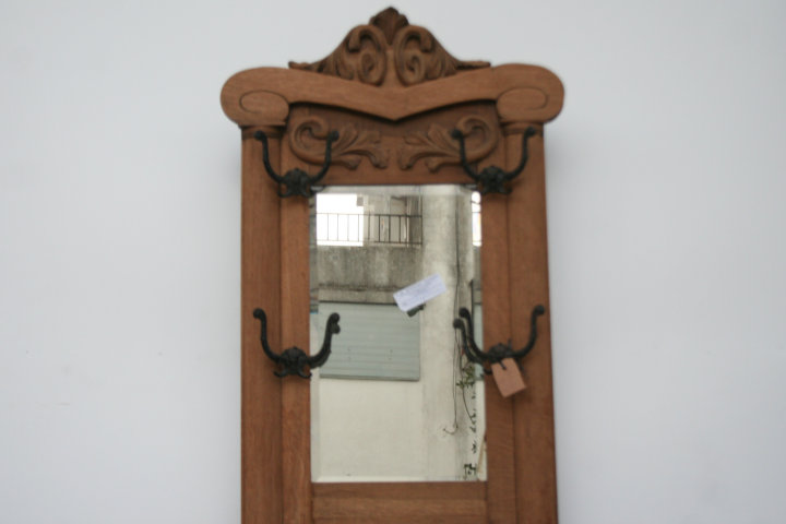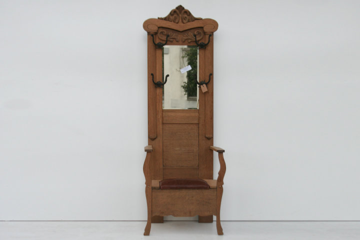 – Perchero con arcón y espejo de roble lavado – La pieza fue restaurada a nuevo – Es ideal para embellecer cualquier ambiente de su hogar