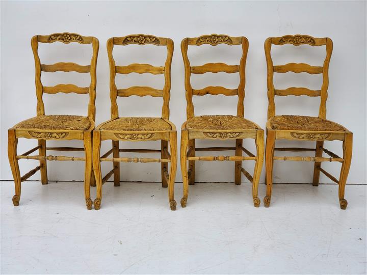 – Juego de 4 sillas estilo Provenzal con asiento de junco