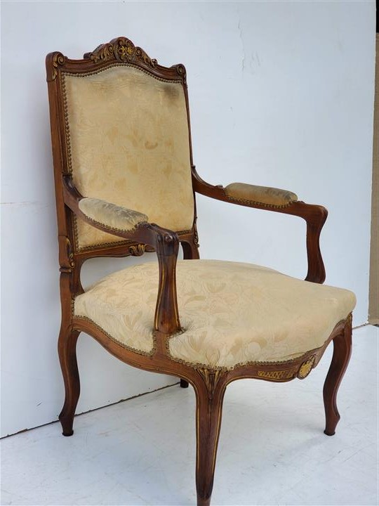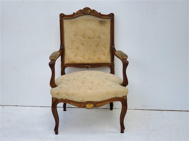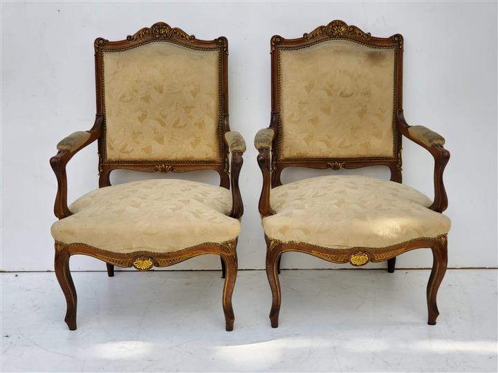 – Par de sillones estilo francés Luis XV de sala con detalles en dorado