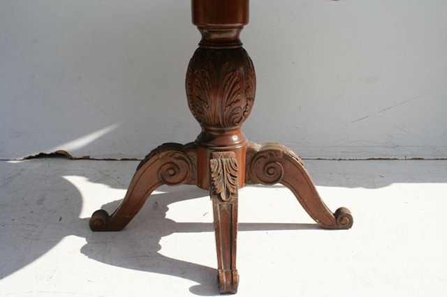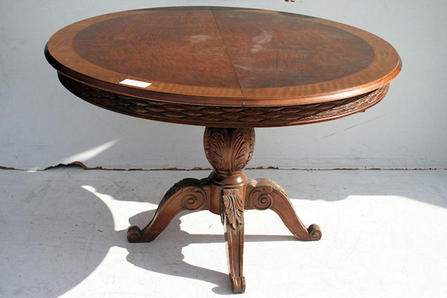 Espectacular mesa de comedor antigua con bocha central tallada con tabla de alargue Es ideal para embellecer de forma única su comedor Se entrega con el completo relustrado de la estructura de madera |