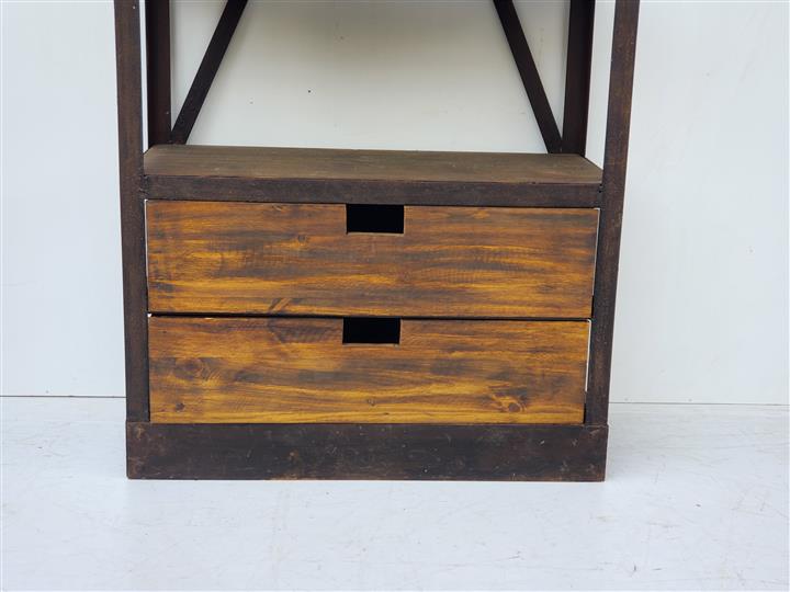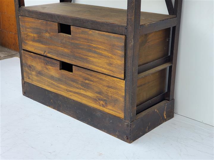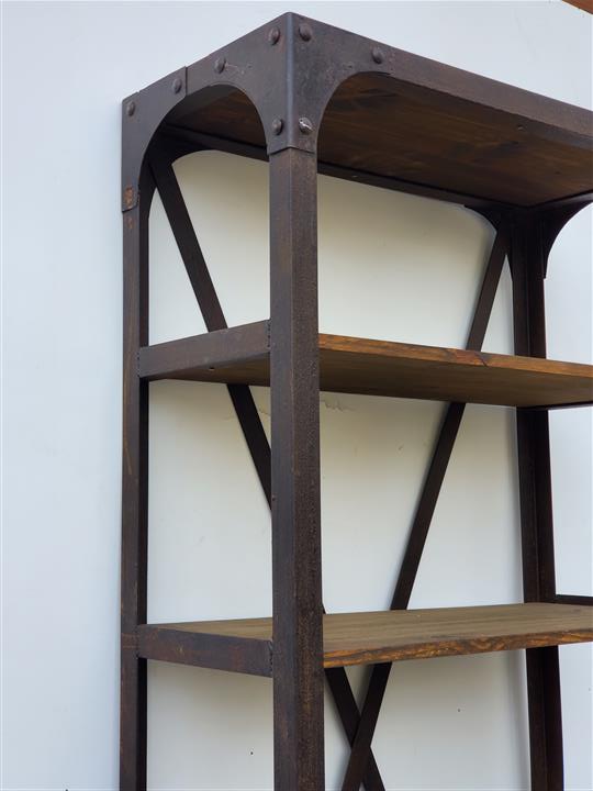 Estantería de hierro y madera realizada con maderas de demolición.