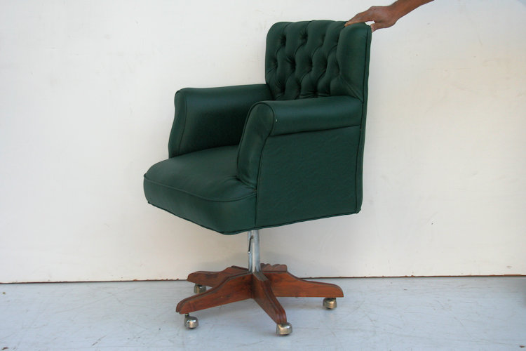 Sillón giratorio capitoné con patas de madera