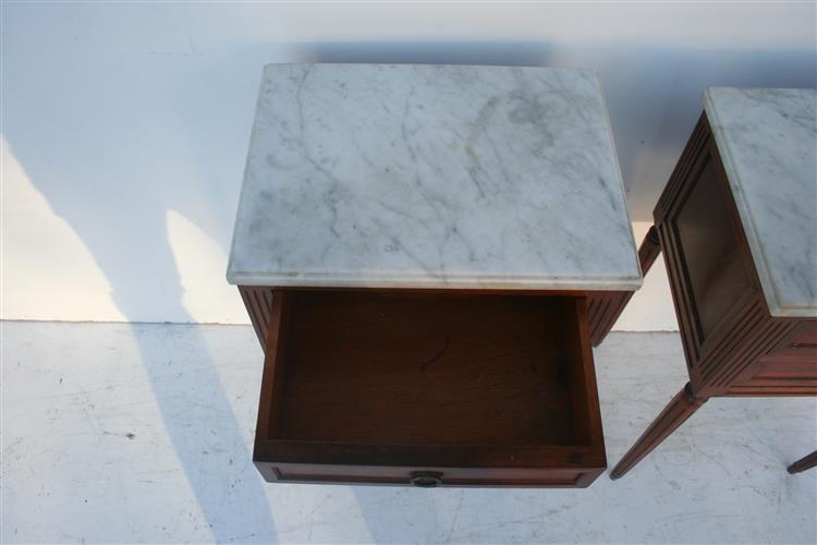 -Par de mesas de luz estilo francés Luis XVI con tapa de mármol