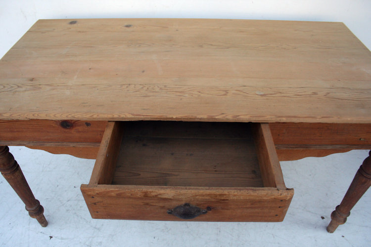 Mesa de campo de patas torneadas con cajón central