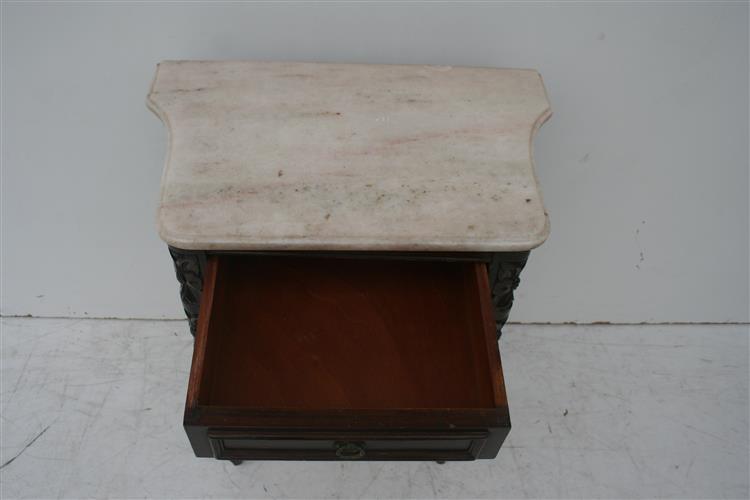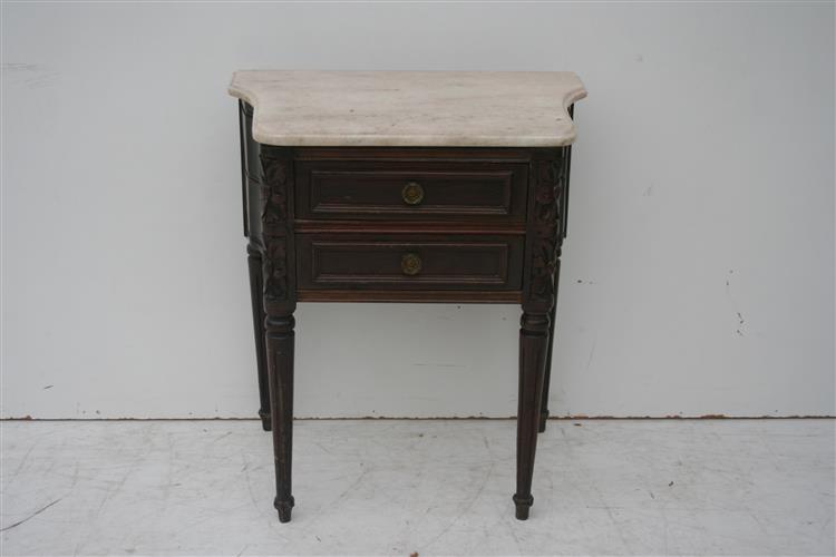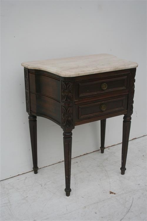 -Par de mesas de luz estilo francés Luis XVI con tapa de mármol