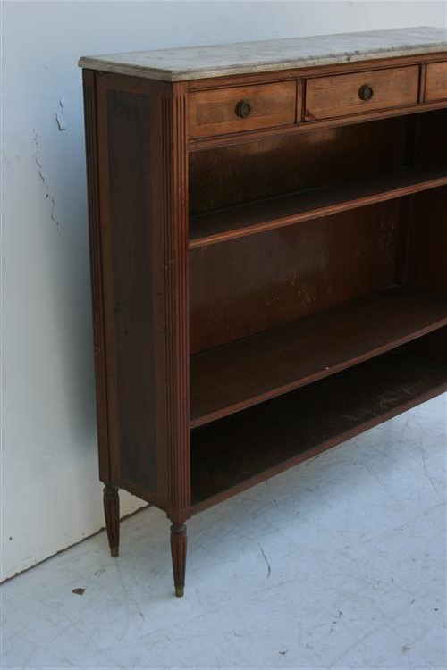 – Biblioteca estante estilo Francés Luis XVI de madera con tapa de mármol y puertas inferiores