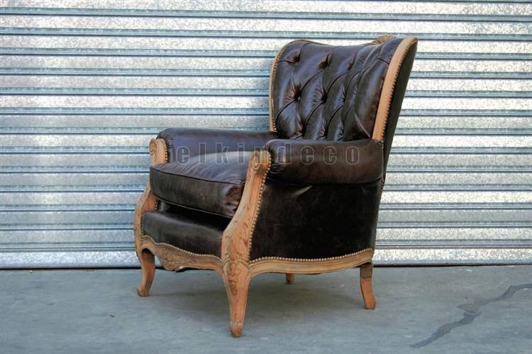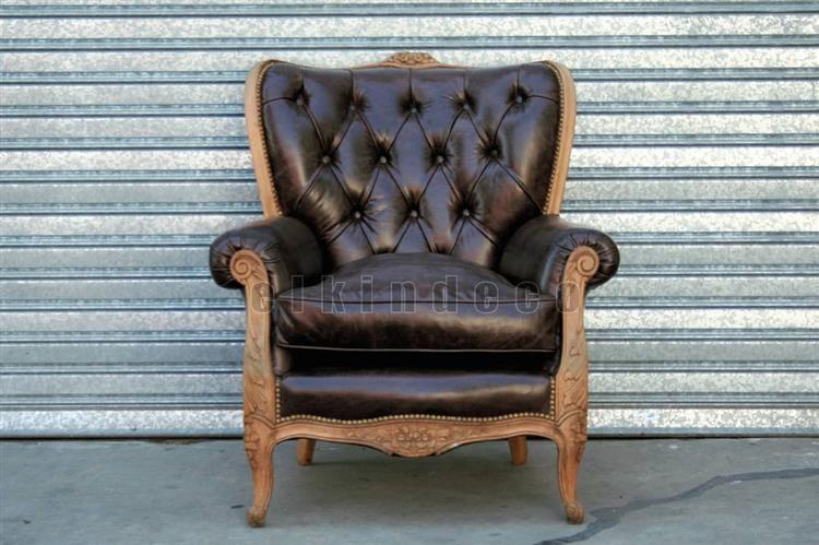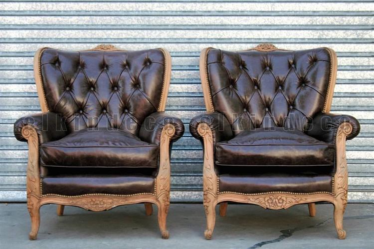 Par de sillones de 1 cuerpo estilo Francés Luis XVI tapizados a nuevo en cuero vacuno quebrado