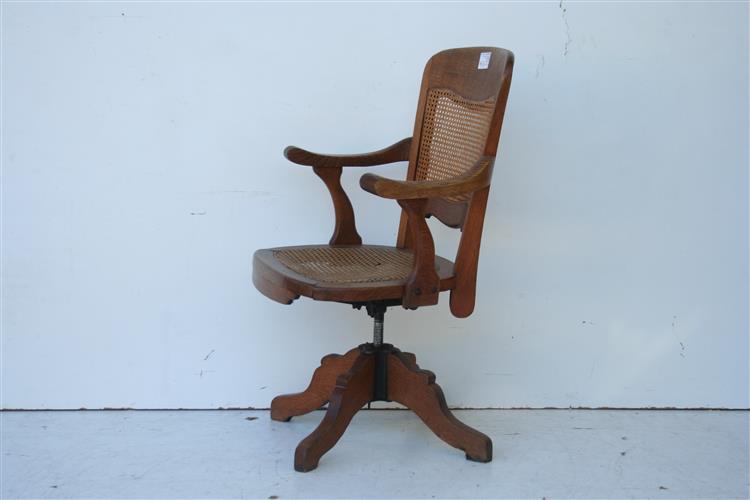 Sillón giratorio de roble de madera con asiento y respaldo de esterilla