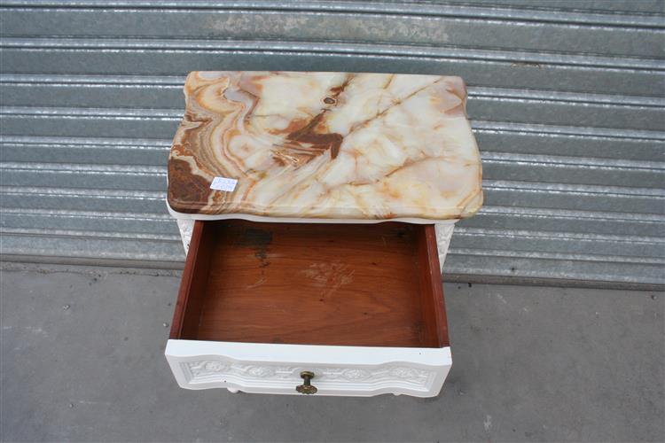 – Par de mesas de luz estilo francés Luis XVI con tapa de mármol patinadas