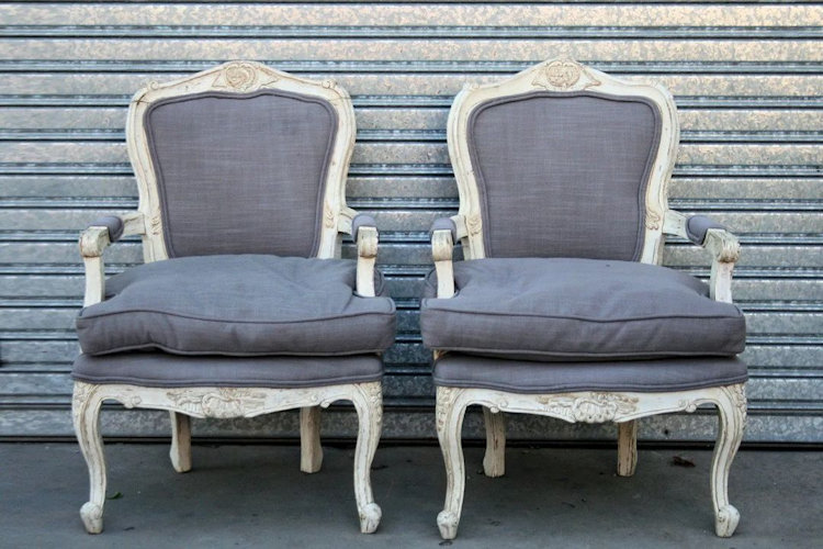– Par de sillones estilo francés Luis XV patinadas en blanco