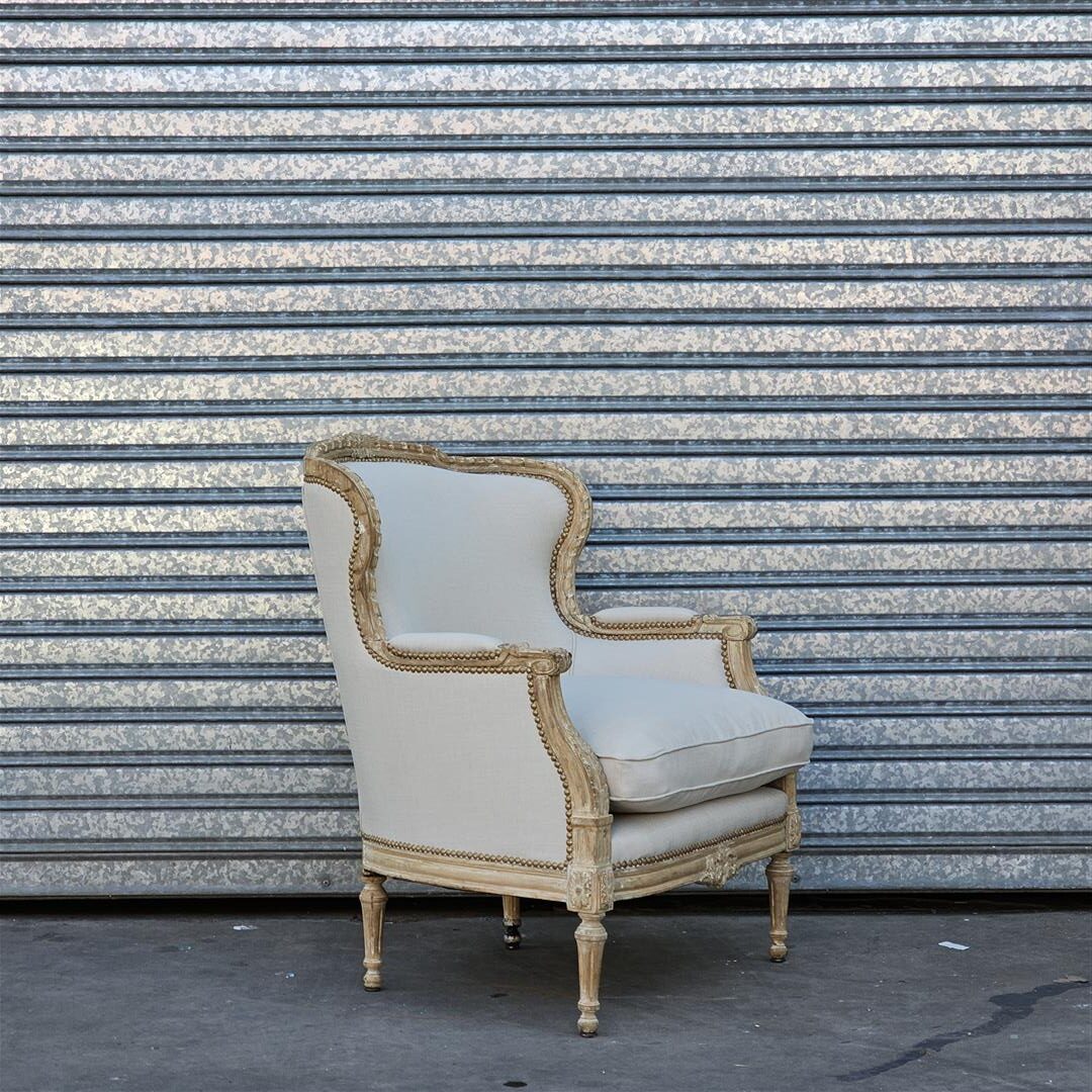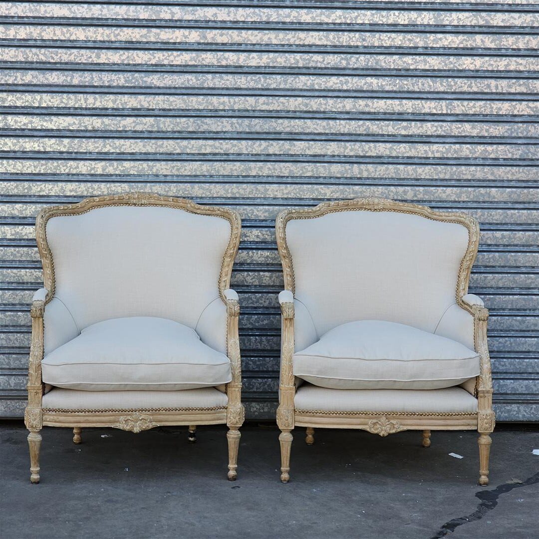 Par de sillones de estilo francés tapizados en lino a nuevo