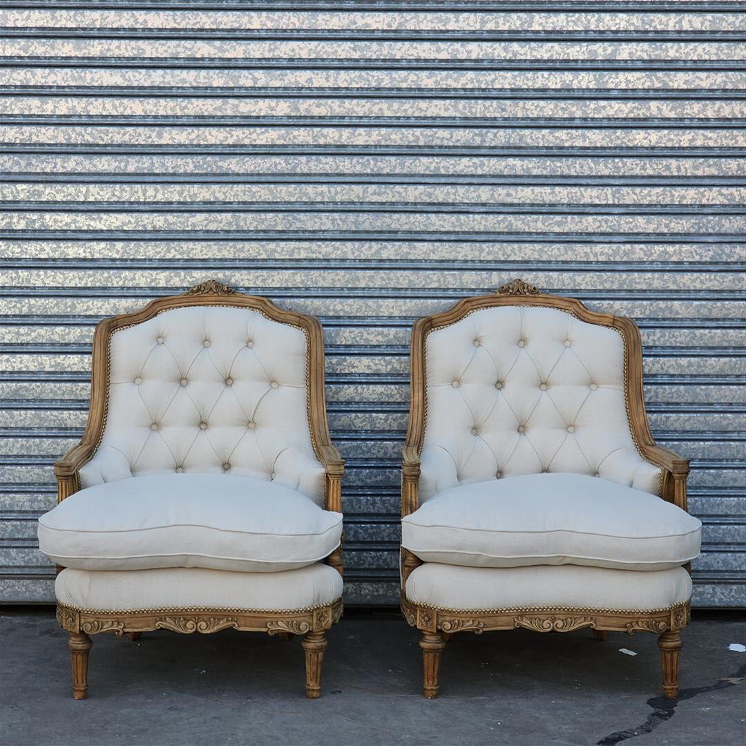 Par de sillones de estilo francés tapizados en lino a nuevo
