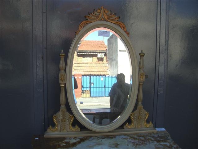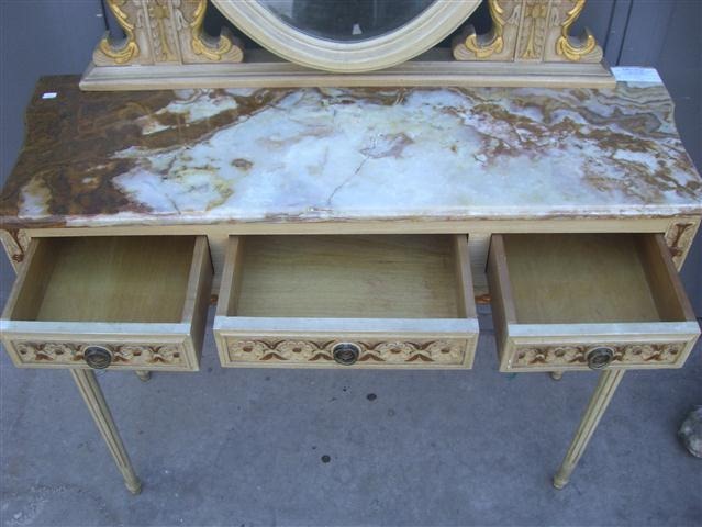 Espectacular Toilette con espejo estilo francés Luis XVI con tapa de mármol patinado Es ideal para embellecer de forma única su dormitorio Posee 3 prácticos cajones con tiradores de bronce El vidrio del espejo es biselado |