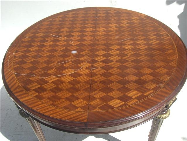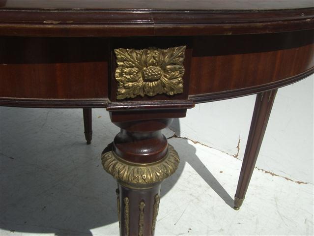 Espectacular mesa de comedor estilo francés Luis XVI marqueteada De calidad excepcional, es ideal para embellecer de forma única su comedor Consulte por el relustrado a nuevo de la pieza – precios convenientes – |