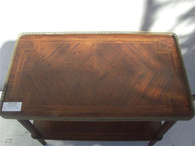 Espectacular mesa centro doble plano Luis XVI con baranda de bronce Es ideal para colocar en cualquier ambiente de su hogar Se entrega con el completo repaso de lustre de la estructura de madera |