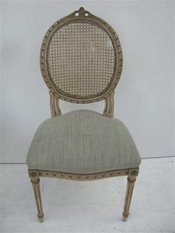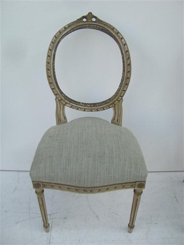 Espectacular juego de 6 sillas estilo francés Luis XVI con respaldo tapizado Son ideales para completar de forma única su juego de comedor El tapizado es antiguo y algunas poseen la esterilla otras y está faltante en otras – consulte por retapizado, precios convenientes – |