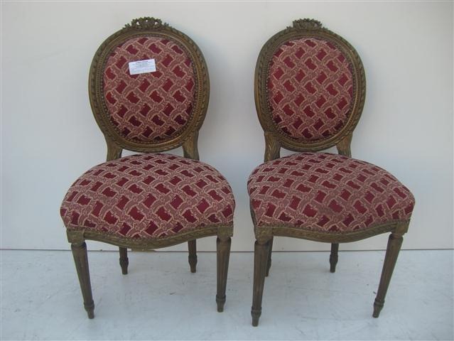 Espectacular par de sillas estilo francés Luis XVI doradas tipo medallón Son ideales para colocar en cualquier ambiente de su hogar El tapizado es antiguo – consulte por retapizado, precios convenientes – |