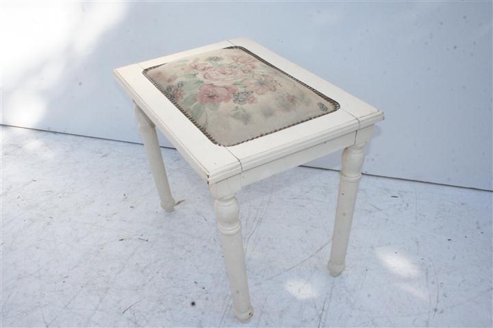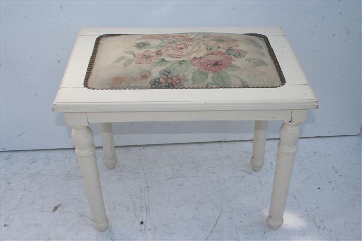 Espectacular banqueta de estilo patinada de blanco Es ideal para colocar en cualquier ambiente de su hogar El tapizado es usado, consulta por retapizado, precios convenientes! |