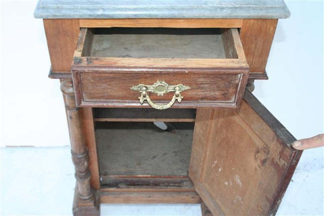 Espectacular mesa de luz estilo Renacimiento con tapa de mármol Es ideal para embellecer de forma única su dormitorio |