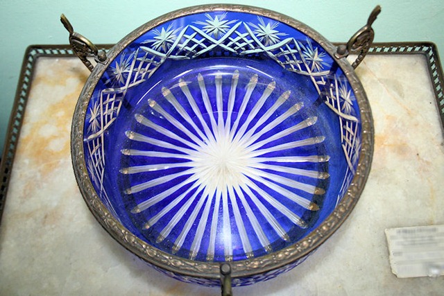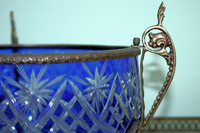Espectacular centro de mesa antiguo de Cristal San Carlos Azul De calidad excepcional, es ideal para embellecer de forma única cualquier ambiente de su hogar |