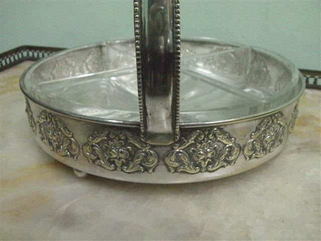 Espectacular canasta copetinera de metal y vidrio Posee capacidad para 4 recipientes distintos Sumamente decorativo |
