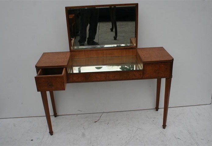 Espectacular Toilette estilo Art deco antiguo Es ideal para embellecer de forma única su dormitorio Posee 4 prácticos cajones El vidrio de los espejo es biselado |