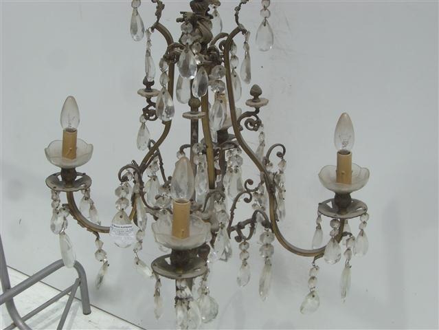 Espectacular araña de bronce antigua francesa Posee bellísimos caireles que adornan su estructura La araña tiene capacidad para 4 luces |