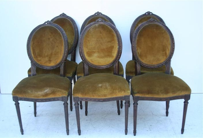 Espectacular juego de 6 sillas estilo francés Luis XVI con respaldo tapizado Son ideales para completar de forma única su juego de comedor El tapizado es antiguo consulte por retapizado, precios convenientes – |