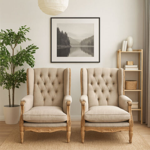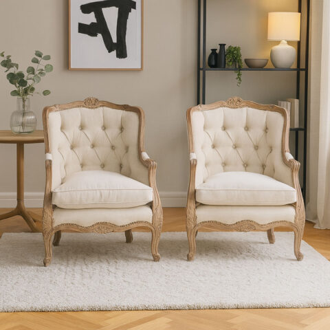 Par De Sillones Estilo Francés Tallados Tapizados En Lino