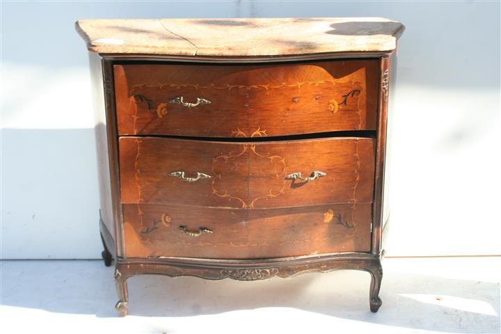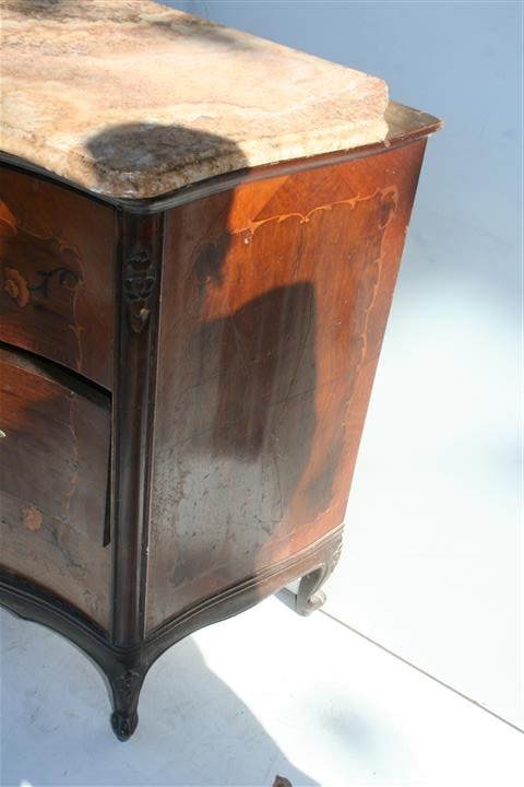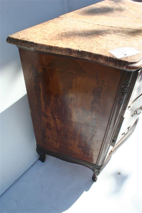 Increíble cómoda estilo francés Luis XV con tapa de mármol PARA RESTAURAR Es ideal para embellecer de forma única su dormitorio o cualquier otro ambiente de su hogar La pieza tiene faltantes de herrajes, el mármol partido y problemas varios de carpintería |