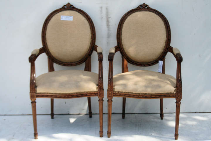 Espectacular par de sillones estilo francés Luis XVI Oval De calidad excepcional, son ideales para embellecer de forma única living, sala o comedor El tapizado es usado – consultar por retapizado, precios convenientes – Precio promocional exclusivo para Internet POR EL PAR! |