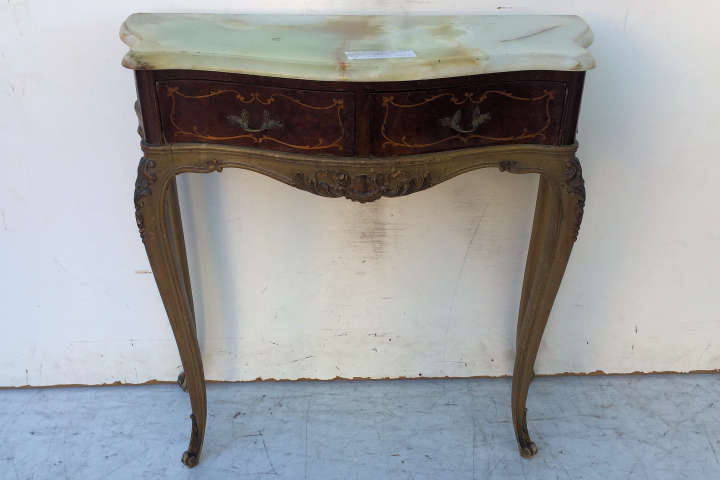 Espectacular consola estilo francés Luis XV patinada con tapa de mármol y 2 cajones De calidad excepcional, es ideal para embellecer de forma única living, sala o comedor |