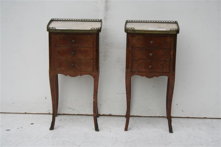 Espectacular par de mesas de estilo francés tipo bailarinas con tapa de mármol Son ideales para embellecer de forma única su dormitorio o sala |