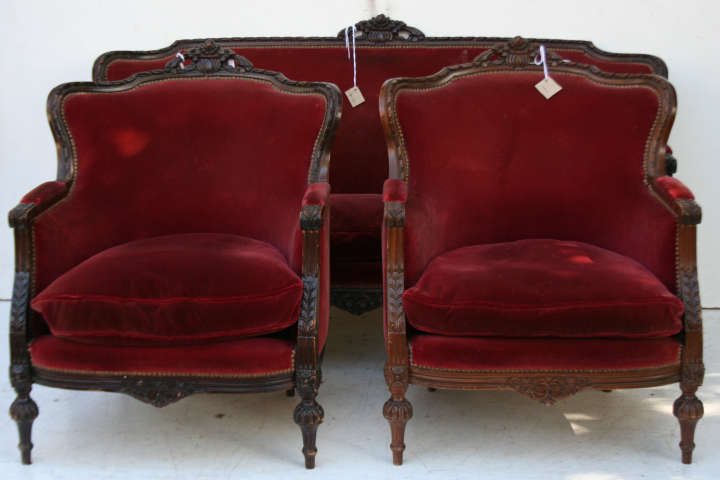 Espectacular Juego de Living estilo francés Luis XVI envolvente compuesto de: * Sofá de 3 cuerpos * Par de sillones de 1 cuerpo Es ideal para embellecer de forma única cualquier ambiente de su hogar Consultar por retapizado, precios convenientes |