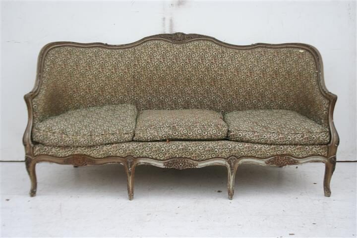 Espectacular sofá de 3 cuerpos estilo francés Luis XV patinado Es ideal para embellecer de forma única cualquier ambiente de su hogar El tapizado es usado – consultar por retapizado, precios convenientes – |