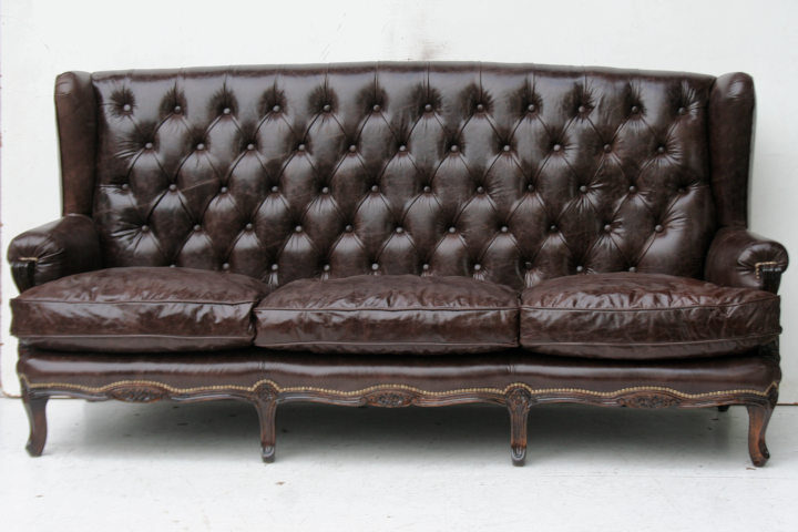 Espectacular sofá de 3 cuerpos estilo francés Luis XV tipo bergere tapizado en cuero vacuno gastado Es ideal para embellecer de forma única cualquier ambiente de su hogar El tapizado es nuevo en cuero vacuno gastado de la maejor calidad |