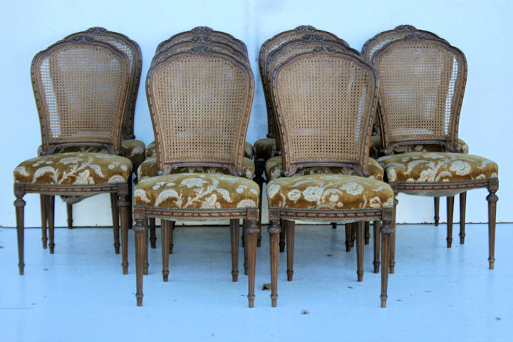 Espectacular Juego de 10 sillas estilo francés Luis XVI de respaldo de esterilla De calidad excepcional, son ideales para embellecer de forma única living, sala o comedor El tapizado es usado – consultar por retapizado, precios convenientes – |